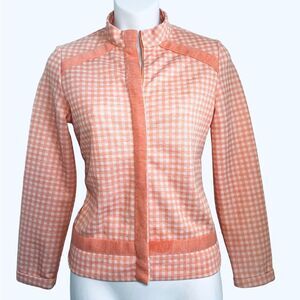 Vintage 1960s Plaid Nehru Jacket Small Peach White Retro