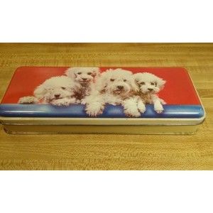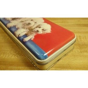 Truly adorable vintage poodle hinged tin by Thorne's Toffee. Made in England. Measurements are 10 inches long, almost 4 inches wide, and 1-1/2 inches high. This tin is in good vintage condition with normal signs of use for its age. Some scuffs and rusty spotting on the rims and inside, please see all the pictures for details. No dents. Please see all photos. Will ship within 1 business day. Thank you for shopping and supporting small business.