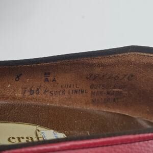 Vintage 1960's Du Pont Corfam Red Brogue Style Wingtip Mary Jane Pump Heels Shoe Women's 8 B AA