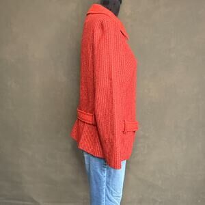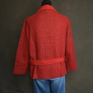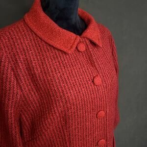 Vintage 1960s Reldan Coat Red Textured Belted Jacket Made in England 100% Wool