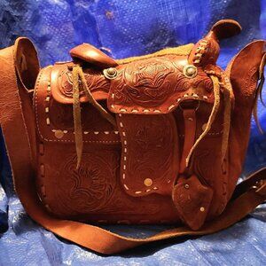Vintage 1960's Saddle Shoulder Bag Hand carved in Mexico