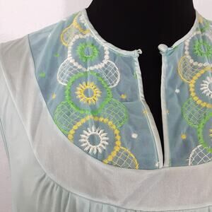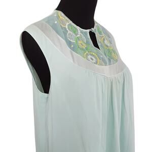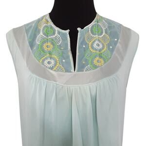 Vintage 1960s Satin Nightgown Sheer Embroidered Lingerie Sleep Dress M Nightie