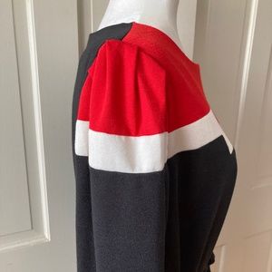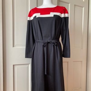 Sears "The Fashion Place" Vintage 60s Red, White, and Black color blocked Mod knit dress. Can be worn loose or tied around waist with the cloth belt.