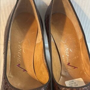 Vintage 1960s Serenades Domain Chocolate Brown Alligator Kitten Heels