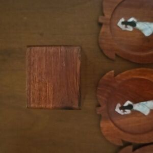 Vintage 1960s Set of Six Mother of Pearl Japanese Lady Floral Coaster Set