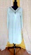 In a light shade of mint green, and is a satin-like fabric. Very cool and light to the touch. This listing is just for the peignoir, the matching night gown was missing. This could still be worn as a night gown by itself though.