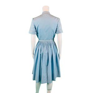 Vintage 1960s Shirtdress Light Blue Ruffle Full Skirt Dress | W 24"