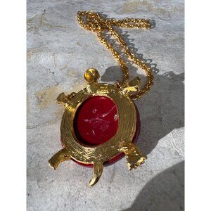 Vintage 1960s Signed Celebrity Gold Turtle Necklace with Marbled Shell