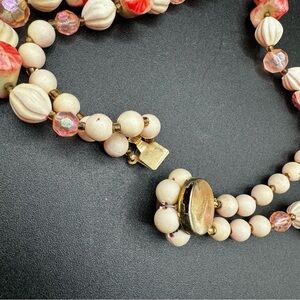 Peachy, red and cream colored beads with multifaceted pink beades