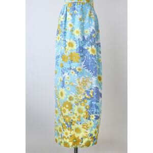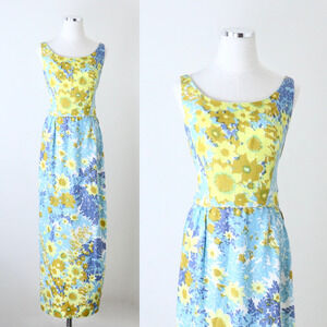 Vintage 1960s Size M Ira Curtis Low Back Maxi Cocktail Dress Sun Flower Print
