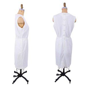 Vintage 1960s Solid Cream Day Dress Stripe Shift | W 29"