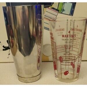 Vintage 1960s Stainless Steel Shaker 7", Cocktail Recipe 16 Oz. Mixing Glass