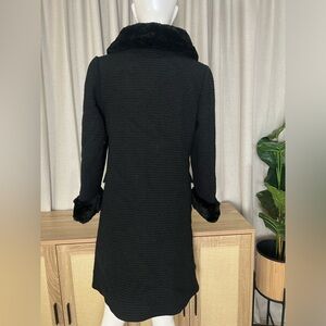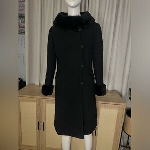 Heavy Duty Trench Coat Vintage 1960's Textured Black Wool Coat with Faux Fur Collar and Cuffs. No size on the coat but fits very small