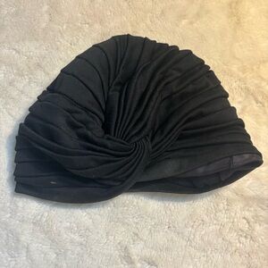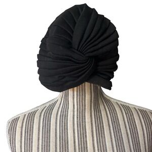 Vintage 1960s Turban-Style Hat Black Knotted design Soft material Lined