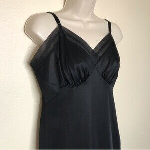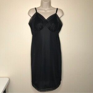 Vintage 1960s Vanity Fair Black Full Slip Adjustable Strap Chiffon Trim Women 38