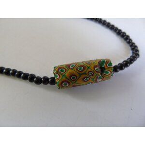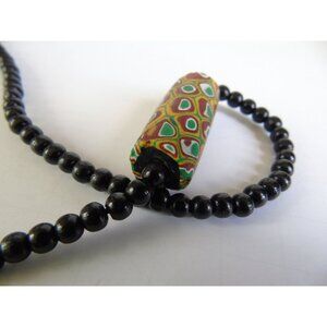 Vintage 1960's Venetian Glass Bead Necklace African Trade Bead 90 Black Beads