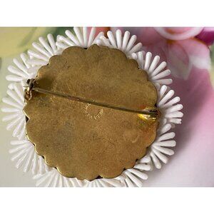 Add a touch of vintage charm to your collection with this stunning 1960s daisy flower brooch and earrings set. Made in West Germany, these pieces showcase classic retro design with a pop of color. The Brooch measures 2" and the earrings are 1". The set is in good vintage wearable condition.