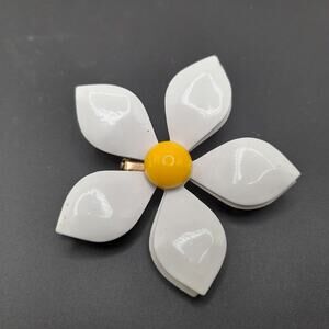 Vintage 1960s White Yellow Enamel Flower Brooch