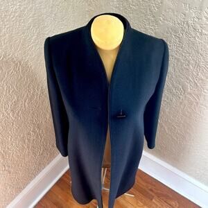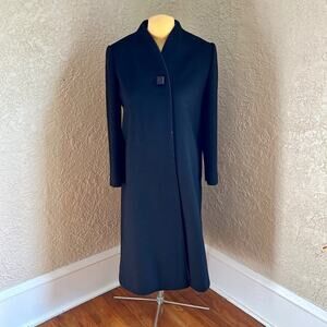 Vintage 1960s Womans’ Alorna Black 100% Forstmann Fabrics Wool Long Overcoat