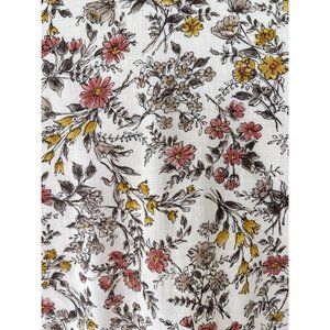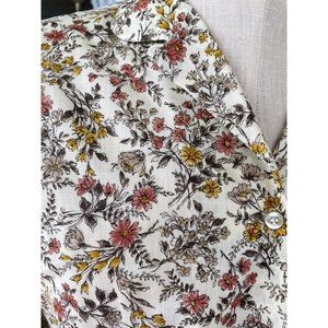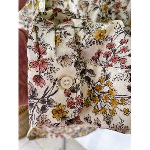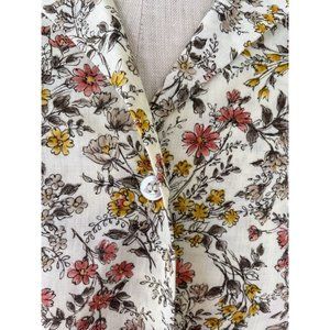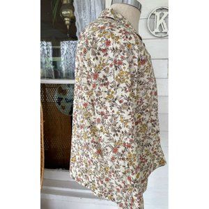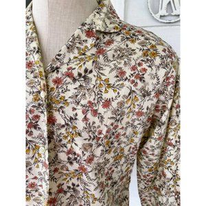 Vintage 1960s Womens Beige Floral Button Blouse Cotton blend Size Large
