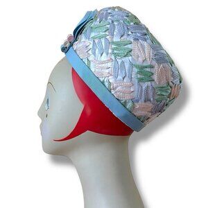 Vintage 1960's Pastel Woven Raffia Dress Hat