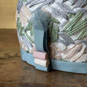 Vintage 1960s Womens Dress Hat Raffia Ribbon Woven Pastels Easter Wedding Derby
