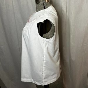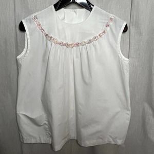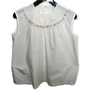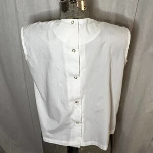 Vintage 1960s Women's White Bib Neck Sleeveless Blouse Size Large