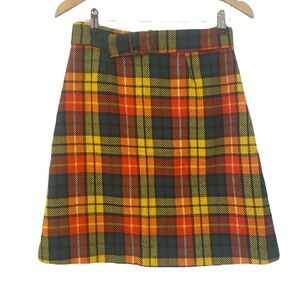 Vintage 1960s Womens Yellow Green Wool Plaid MCM Skirt Belt Size Small Aline