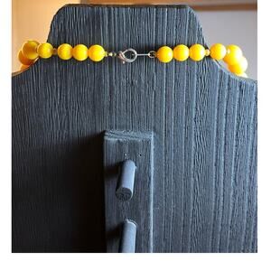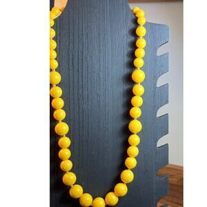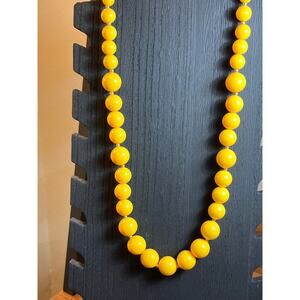 Add a fun pop of color to your vintage jewelry collection! This retro necklace features bright yellow graduated plastic beads strung beautifully for a bold, mid-century mod style. Perfect for adding a cheerful accent to any outfit.