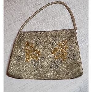 Vintage 1960s beaded gold purse 9w x 6h Made In Japan