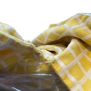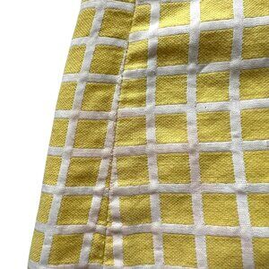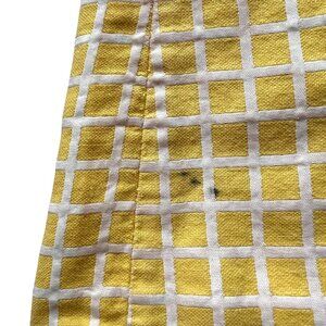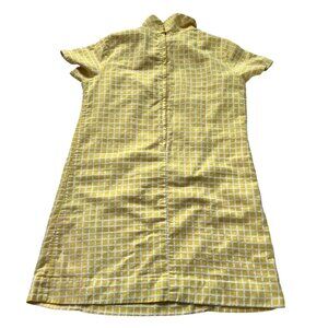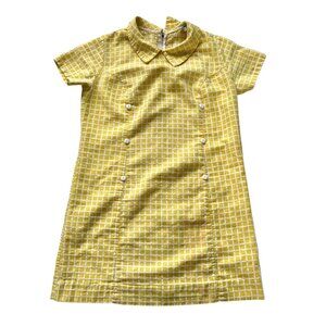 Vintage 1960s dress, Carib Casuals Inc, yellow and white grid pattern, white plastic buttons, peter pan collar, short sleeve, metal zipper, estimated fit at a modern large - extra large but please check the measurements to ensure fit, pit to pit: 23", waist flat: 21", length: 35", preowned and has spots/marks throughout, small tear at the collar - see photos