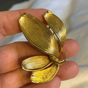 Vintage 1960s gold tone pin /brooch, leaf motif