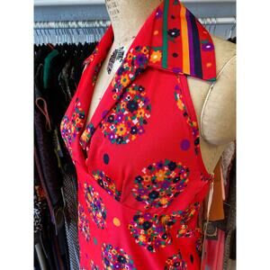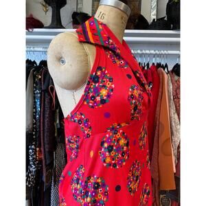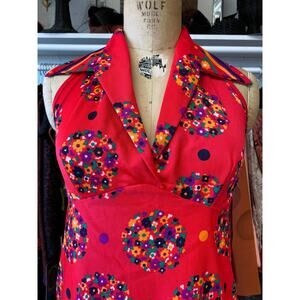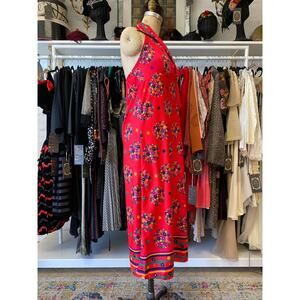Vintage 1960s red maxi dress, mod red floral, backless empire waist, size large