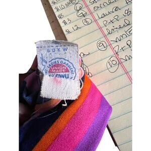 Vintage 1960s stripe polyester maxi skirt and scarf. Zipper and button. Union made tagged size 16. Flat Measures: waist15.5. Length 46. Triangle scarf measures 70x34. Please note measurements