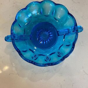 Vintage 1960s-1970s Anchor Hocking Fairfield Blue Double Handled Glass Dish