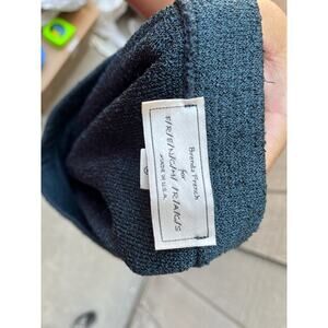 Navy blue open thread workwear skirt by Brenda French/French Rags, 100% rayon. I do not know the size but the measurements are: