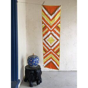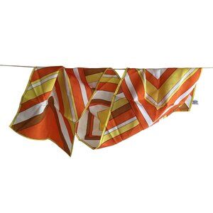 This vintage scarf from the 1960s-70s exudes retro charm with its vibrant chevron pattern in warm hues. Made from acetate twill, it offers a soft, lustrous finish perfect for adding a touch of nostalgia to contemporary outfits.