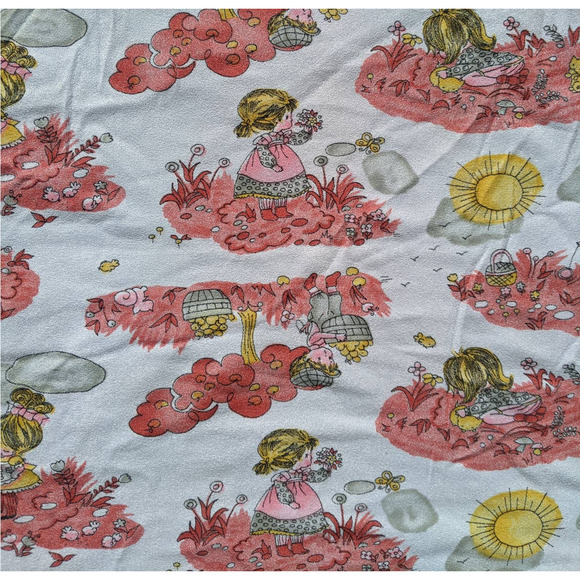 Vintage 1960's-70's Holly Hobby Inspired Novelty Print Synthetic Blend Fabric