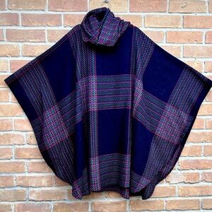 Vintage 1960s/70s Honey Recycled Wool Turtleneck Oversized Poncho Black