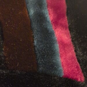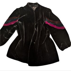 Vintage 1960s/70s Olympia black fur coat with multi color stripes