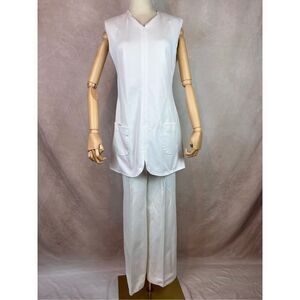 Vintage 1960s 70s Pantsuit White 2 Piece Set Polyester