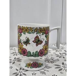 Vintage 1960s-70s Pedestal Mugs – Pair – Retro Butterfly & Floral Design