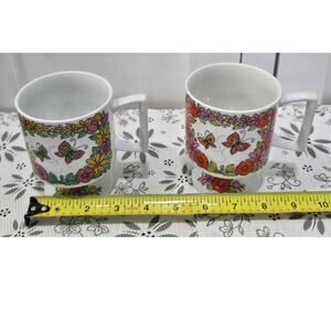vintage mugs, pedal mugs, butterfly mugs, floral mugs, retro 60s cups, mid-century kitchenware, uninmarked vintage, collectors mug pair