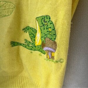 Vintage 1960's-70's Yellow Cyn Les Frog Patch Sweater Size Small