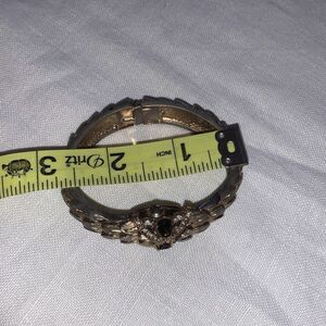 Vintage 60s Norman Jeweled Hinged Costume Bracelet Watch(Swiss Made). Gold tone snake/dragon scale rhinestone bracelet with hidden watch.