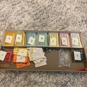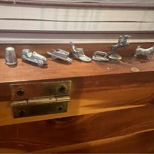 This Monopoly set is a must-have for any board game collector or enthusiast. Made in the United States by Parker Brothers, this game is of great quality and will provide hours of entertainment. Don't miss out on the opportunity to own a piece of history with this vintage 1961 Monopoly Board Game by Parker Brothers. NOTE: see pictures for what is included, a few money bills missing, no instructions. Box fully intact but just discolored. Game tokens include: hat, thimble, car, wheelbarrow, shoe, iron, man on horse, dog
