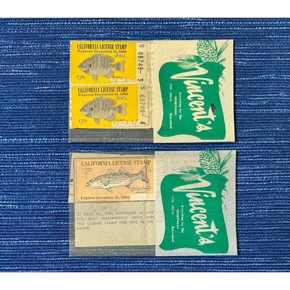 Vintage 1962 & 1965 California Sport Angling Fishing & Frogs License Stamp 15B