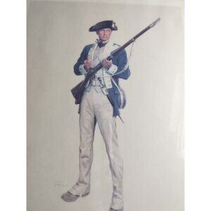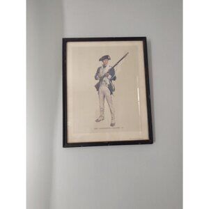 Vintage 1962 Continental Insurance Soldier 1781 Tom Lovell Lithograph Print in a Glass Covered Wood Frame.