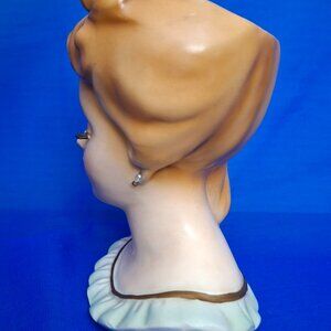 Vintage 1962 Inarco Porcelain Green Bow Lady Head Vase E-779