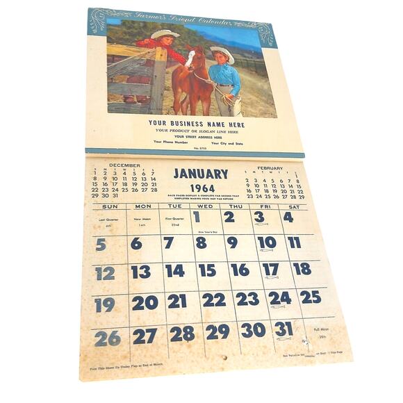 Vintage 1964 Farmers Friend Calendar Month By Month